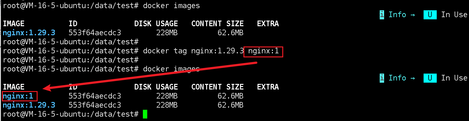 为 Docker 镜像添加新的标签(Tag),也可理解为给镜像创建别名或引用,常用于标记镜像版本、为推送镜像到仓库做准备,或简化镜像引用。