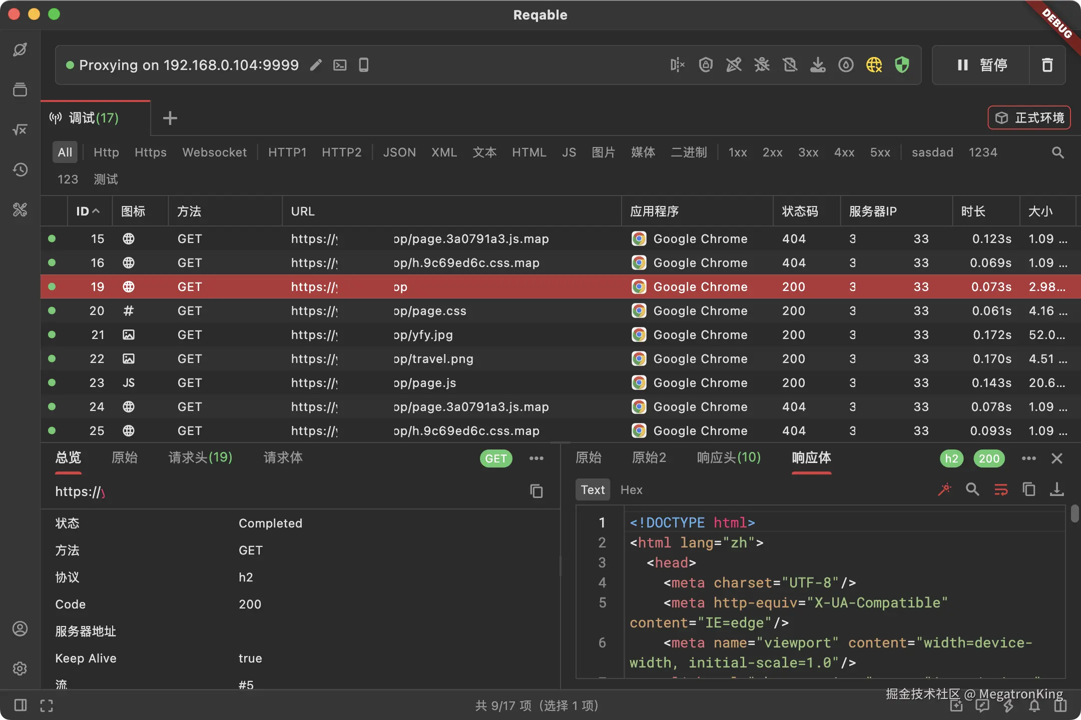 重新编译,再次运行Reqable开始抓包,看起来没有问题了。
