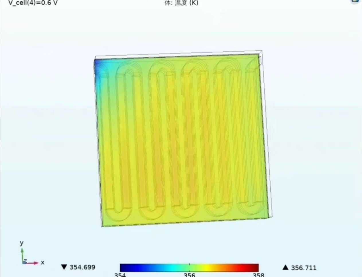 在实际的COMSOL模拟中,热传递方程会更加复杂且结合实际几何结构和边界条件,但这个简单代码能大概展示热传递方程数值求解思路。通过模拟可以观察到在蛇形流道中不同位置温度的变化,帮助我们理解热管理对电池性能的影响。