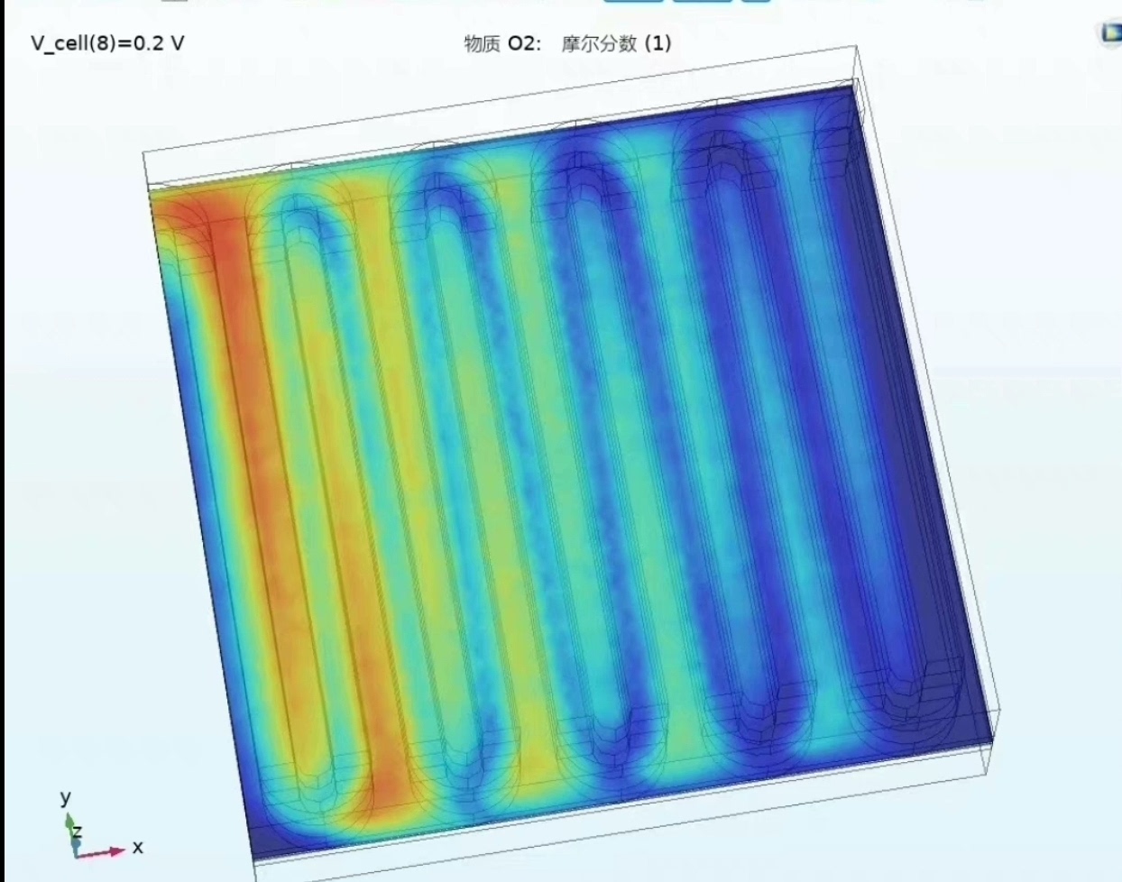 对于膜态水分布,它直接影响膜的质子传导性能。通过建立合适的模型和方程,在COMSOL里能清晰看到膜态水在膜内的分布情况。比如基于一些扩散方程和吸附 - 解吸机理来构建模型。这有助于我们优化膜的设计和操作条件,以达到最佳的质子传导性能。