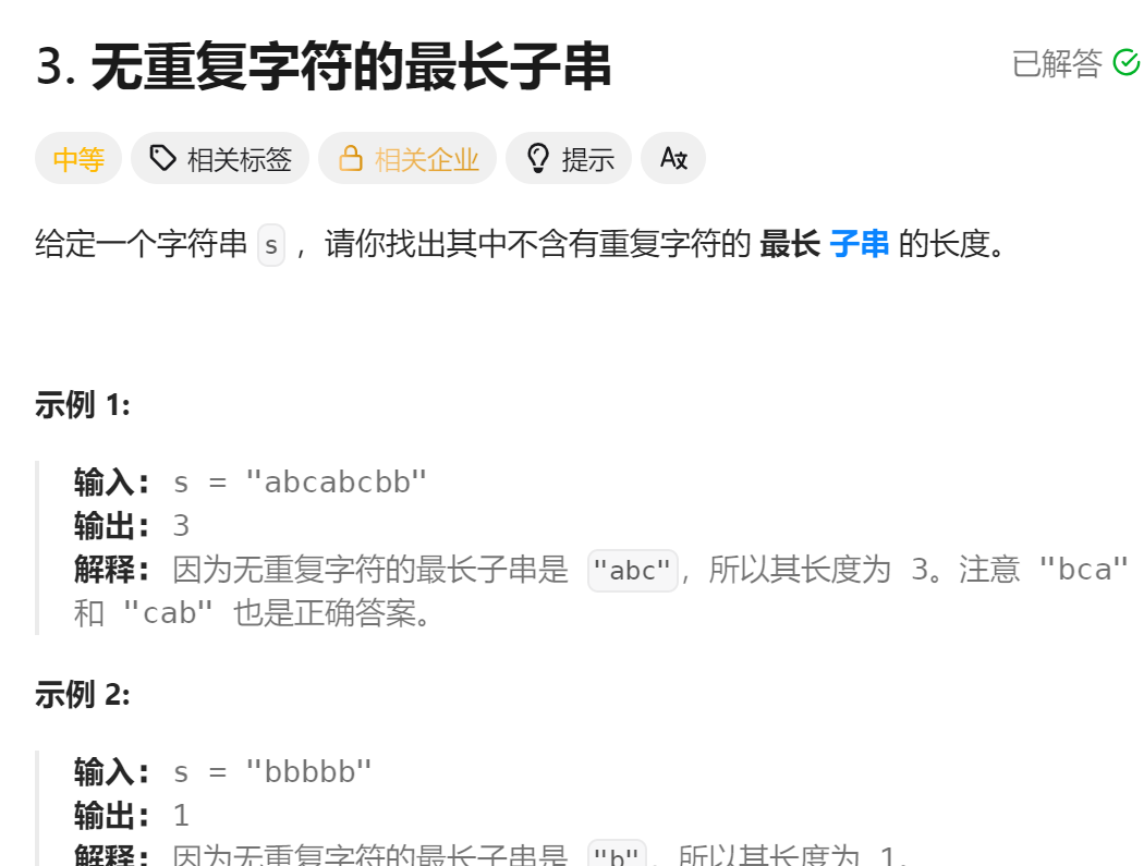 2、无重复字符的最长子串
