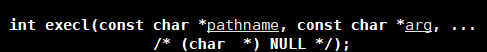 后面的参数是c语言中可变参数函数 ,是c提供的宏实现,总之在使用上我们只需要知道命令行怎么写后面的参数就怎么写,就例如我们要执行ls -a -l的命令,在命令行就是这么写的那么对于后面的参数就这么写,只不过需要一个一个用分别用引号括起来然后用逗号隔开 ,另外注意最后一个参数必须是NULL为结尾,如果没有会导致未定义行为。