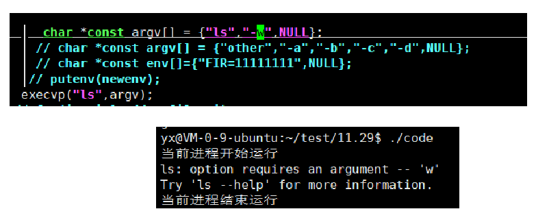 而像ls这样的命令会受到影响,因为之前学习我们知道ls这样的命令就是通过命令行参数表里面的参数执行对应功能的,如下此时传过去的命令行参数表为 ls -w,所以替换会的程序再执行的时候就是执行的 ls -w,而ls没有ls -w所以出错了。