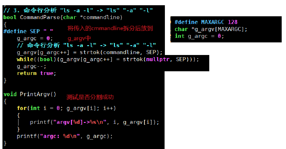 // 3. 命令行分析 "ls -a -l" -> "ls" "-a" "-l"