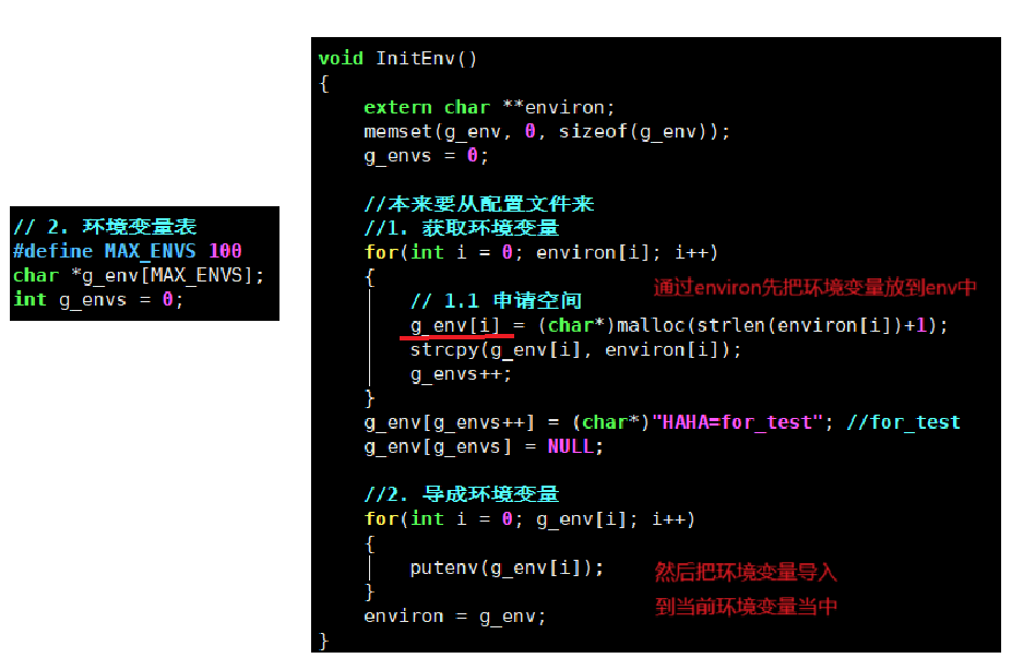 shell启动的时候会从配置获取环境变量,我们这里无法做到,就模拟实现先获取环境变量表,然后导入到当前进程的环境变量表当中。