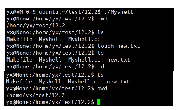 此时初步的Shell 就能使用pwd ls这样的命令了,但是cd这样的命令却不能使用。