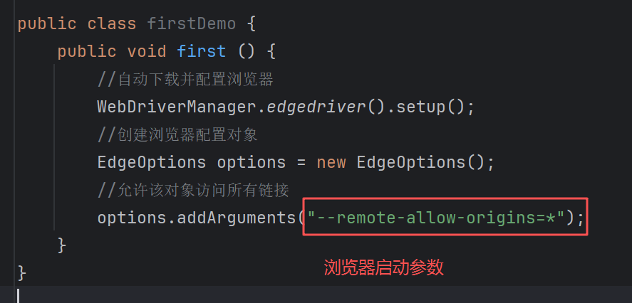 --remote-allow-origins=* : 允许任何来源的页面或应用与浏览器实例进行通信