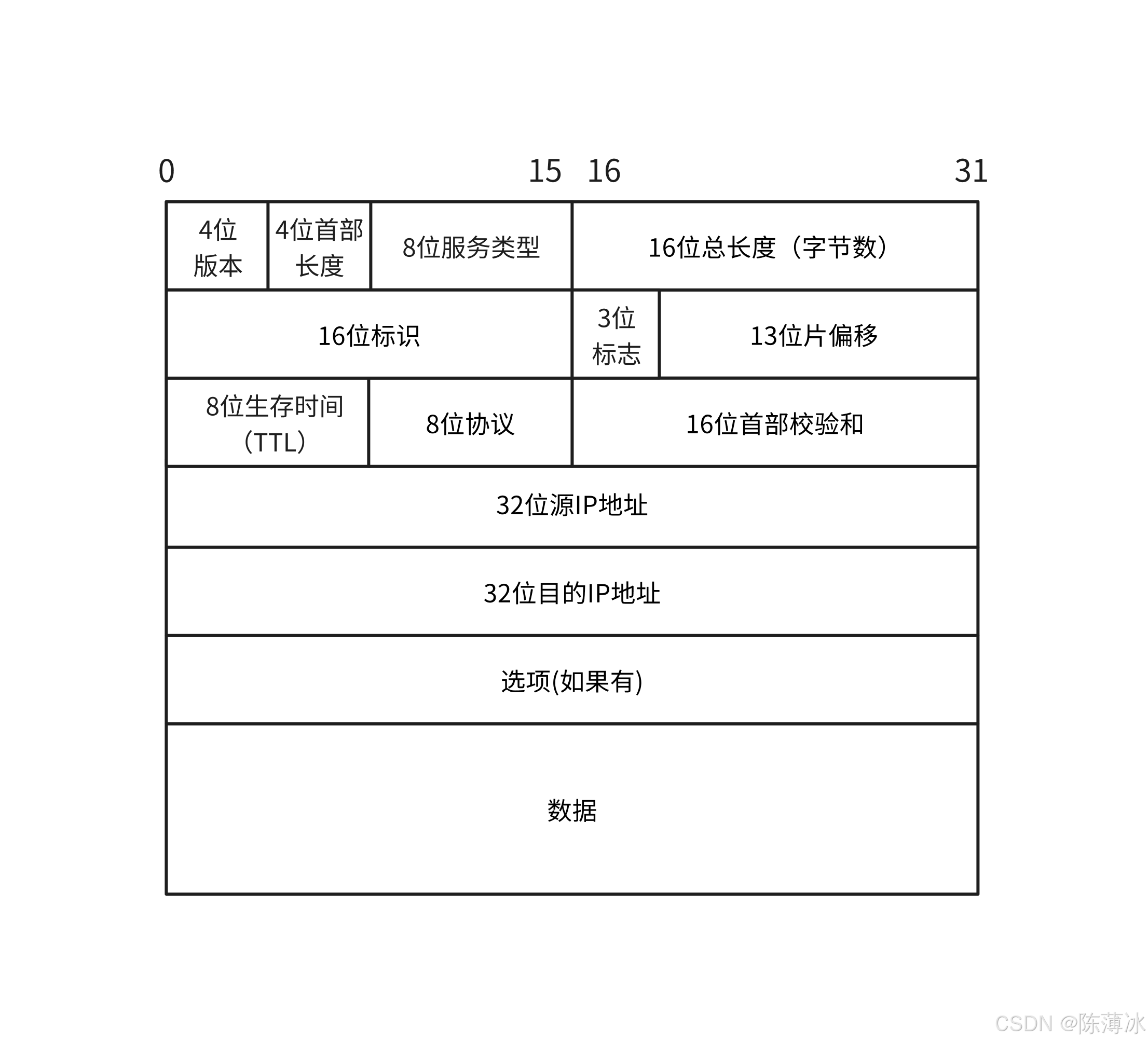 16位首部校验和:检测IP报头在传输过程中是否发生比特错误(比特位反转等问题)。