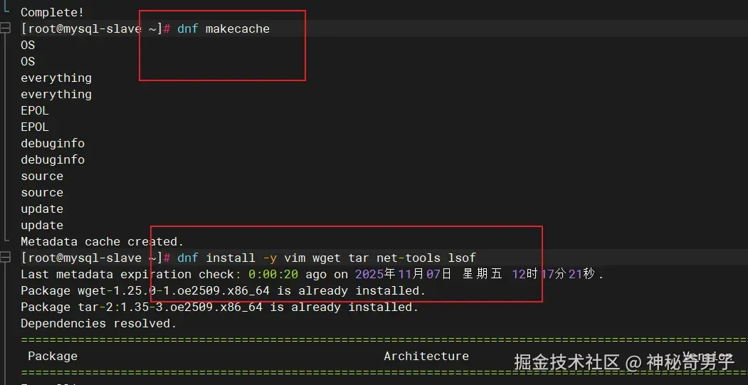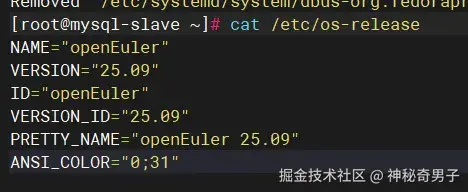 openEuler 作为开源操作系统,凭借其卓越的稳定性、安全性和性能表现,正在成为企业级应用的首选平台。本文基于 openEuler 25.09 最新版本,深入探索在该系统上部署 MySQL 5.7 主从复制架构的完整实践,涵盖环境准备、主从配置、数据同步验证以及性能优化等关键环节。