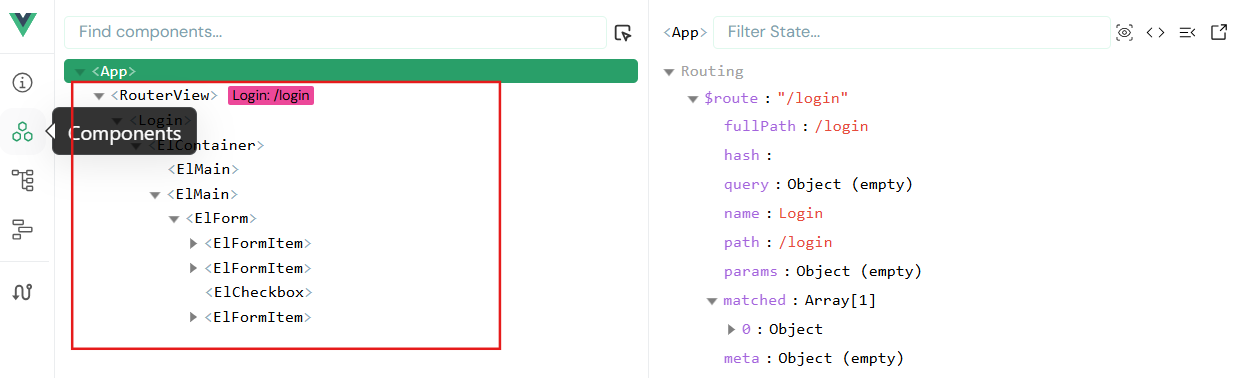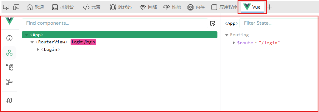 切换到 "Vue" 标签页(若未看到,刷新页面或检查是否为 Vue 应用)。