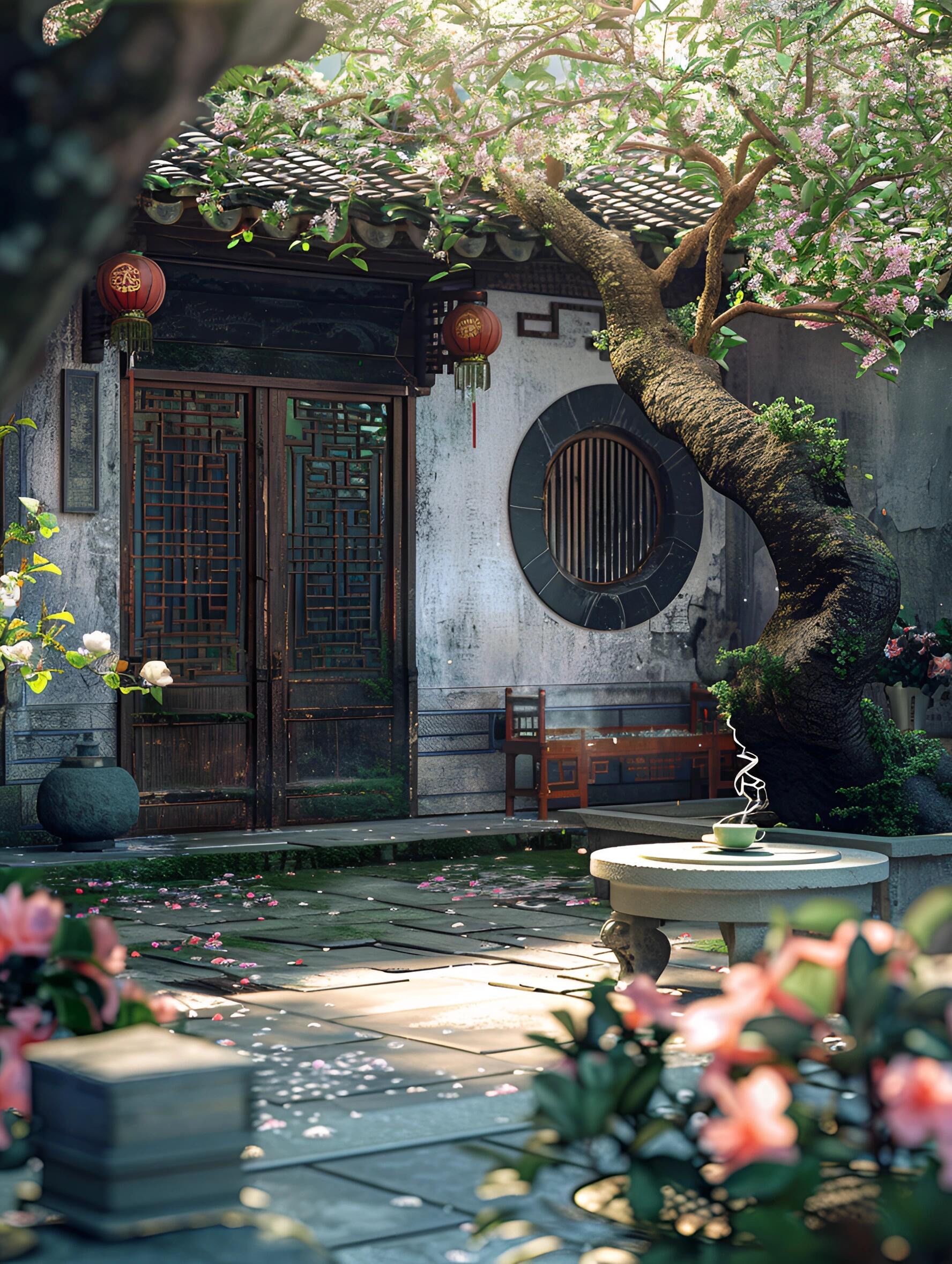 老房子在镇子的最深处,是典型的江南小院,一进两厢,院角栽着一棵腊梅,只是如今早已枯萎。推开那扇掉漆的木门,"吱呀"一声,像是唤醒了沉睡多年的时光。院子里积满了落叶,雨水打在落叶上,发出"沙沙"的声响,更显冷清。