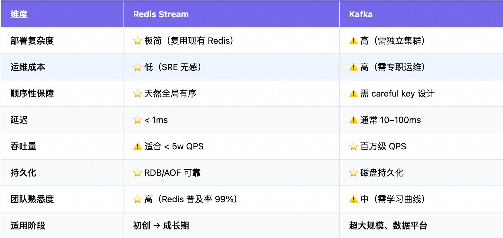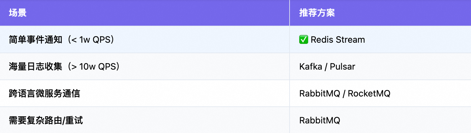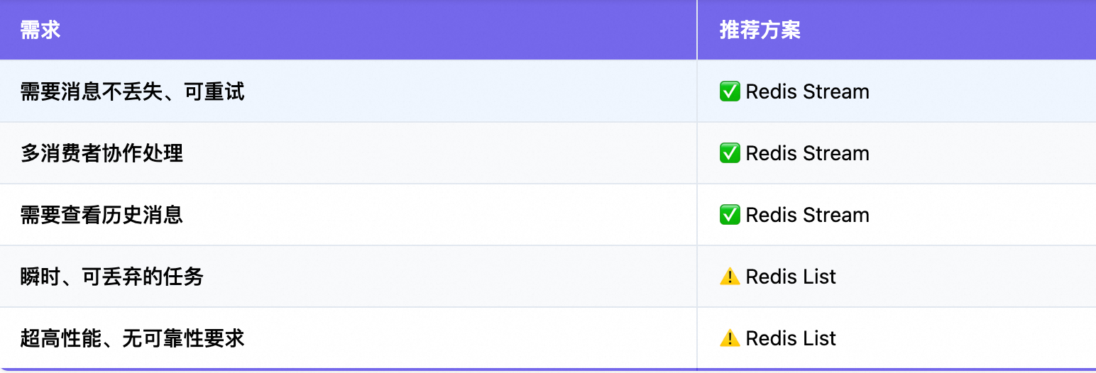 我们选择 Redis Stream,不是因为 Kafka 不好,而是因为: