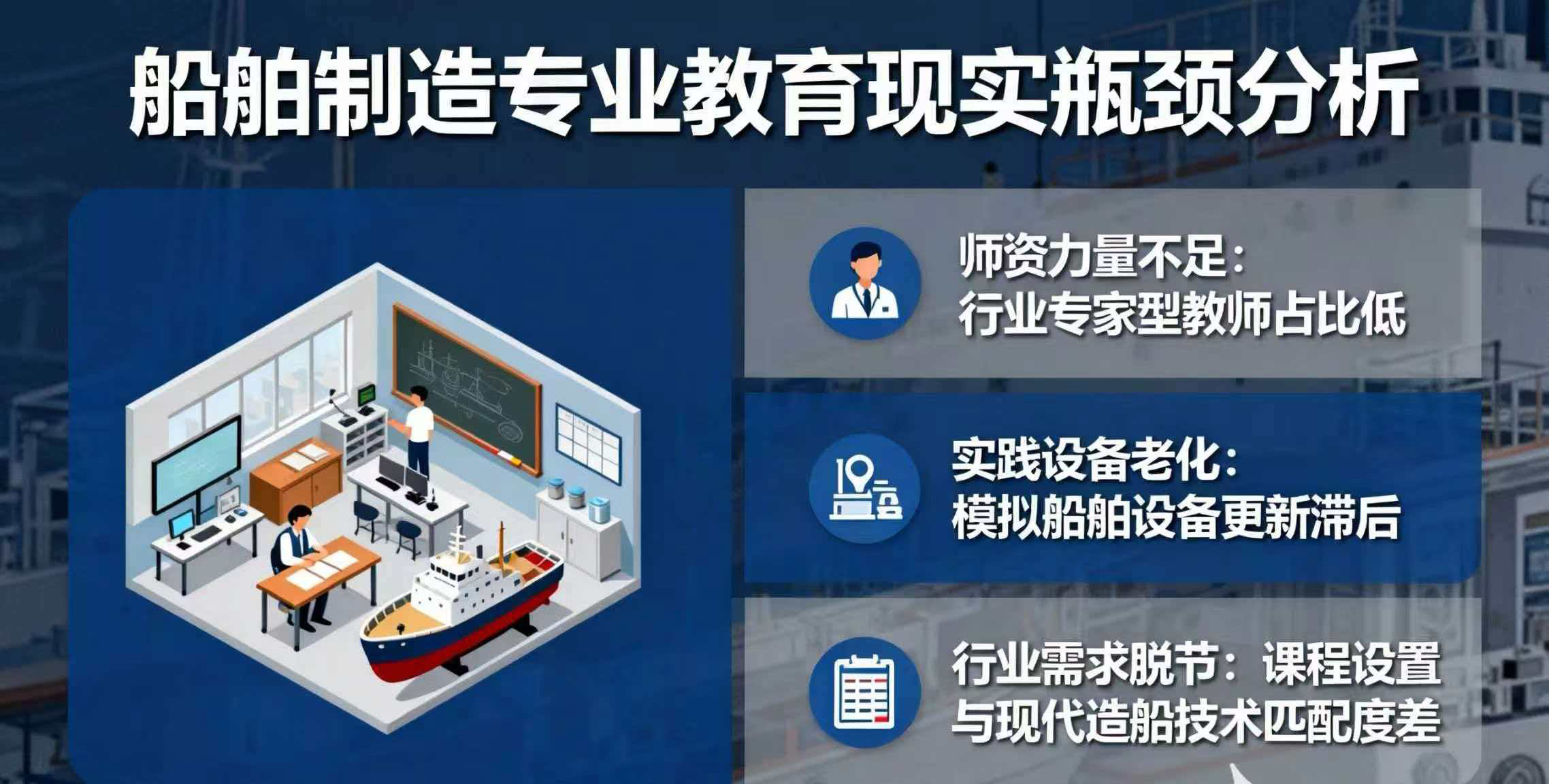 教学与实船作业脱节,产教融合深度不足。船舶作业具有流动性和长周期特点,学生难以及时参与实船实习。同时,校企合作多停留在参观交流层面,真实项目案例难以融入日常教学,导致人才培养与产业需求存在差距。