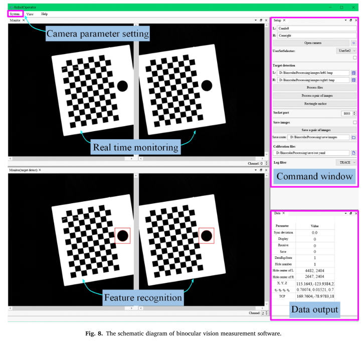 - 包含相机参数设置、实时监控、特征识别、命令和数据输出等模块