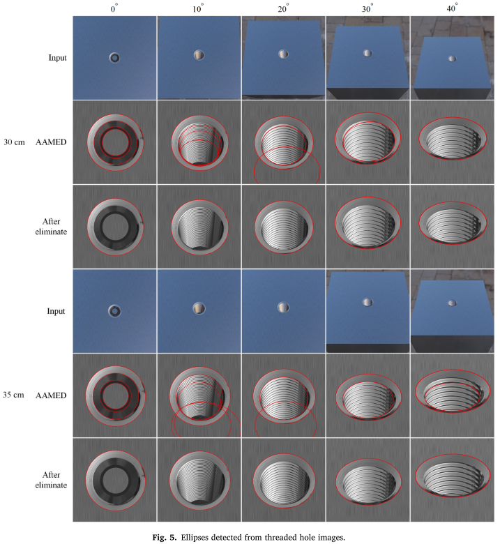 采用**AAMED(Arc Adjacency Matrix-based Ellipse Detection)**算法进行椭圆检测,该算法具有以下优点: