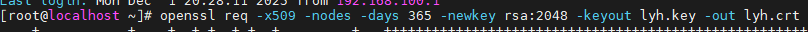 -keyout lyh.key 指定私钥文件的保存路径和名称