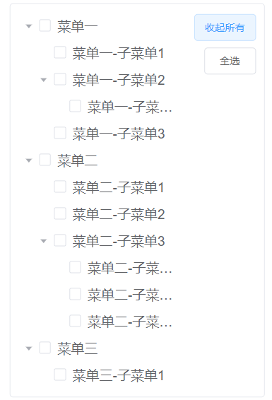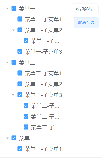 全选逻辑 递归收集所有节点ID实现全选功能: