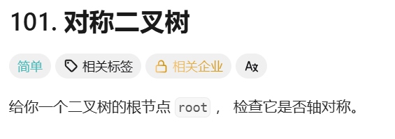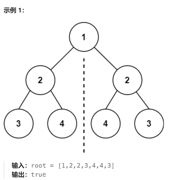 我们不难知道,分析的其实是二叉树根节点的左、右子树是否对称。此时我们很容易想到利用上面相同的树 代码实现,只不过需要注意,当左子树节点递归到其左孩子时,右子树节点就要递归到其右孩子。
