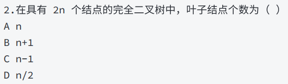 在这道题中,完全二叉树结点的个数为偶数,所以 n1 == 1 。那么n0==n,即叶子节点有n个。