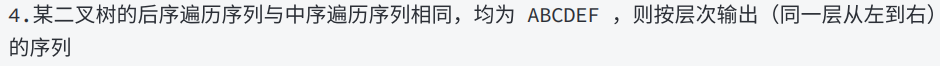 层序序列: F − > E − > D − > C − > B − > A F->E->D->C->B->A F−>E−>D−>C−>B−>A