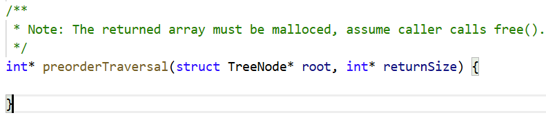 我们看到第三幅图,图中除了注释要求我们动态开辟 数组空间存储节点数据,还在函数中添加了参数int* returnSize,说明对于二叉树结点个数,我们事先是不知道的。
