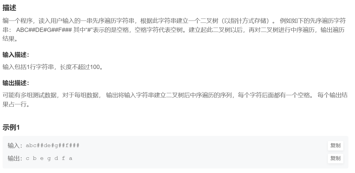 在这里,我们需要根据一个二叉树的前序遍历序列,构建二叉树,再输出这个二叉树的中序遍历序列。