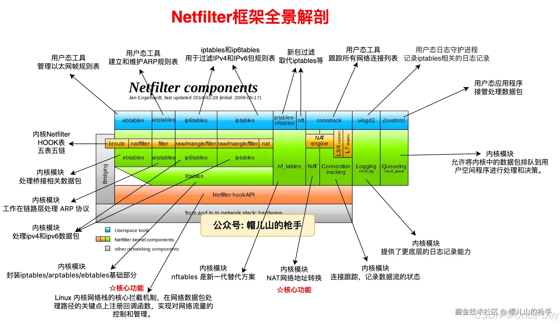 - 一图看懂Linux网络核心:Netfilter框架全景解剖Netfilter 框架由Rusty Russell 于 19 - 掘金