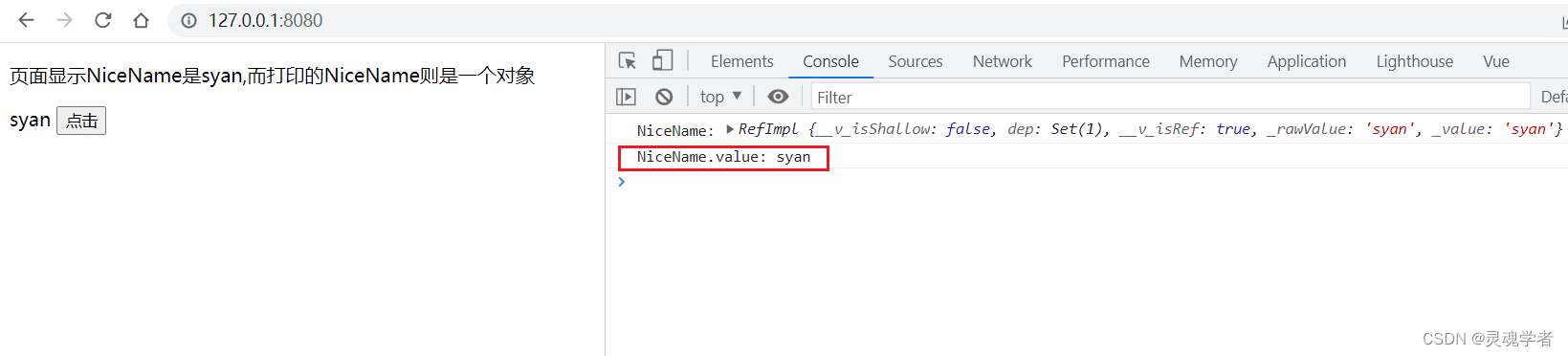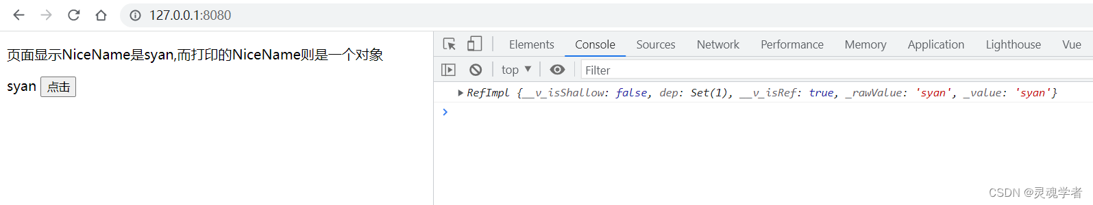 页面显示 NiceName = syan ,而控制台打印的 NiceName 则是一个对象,同样要是 NiceName = syan 则需要打印 NiceName.value ;