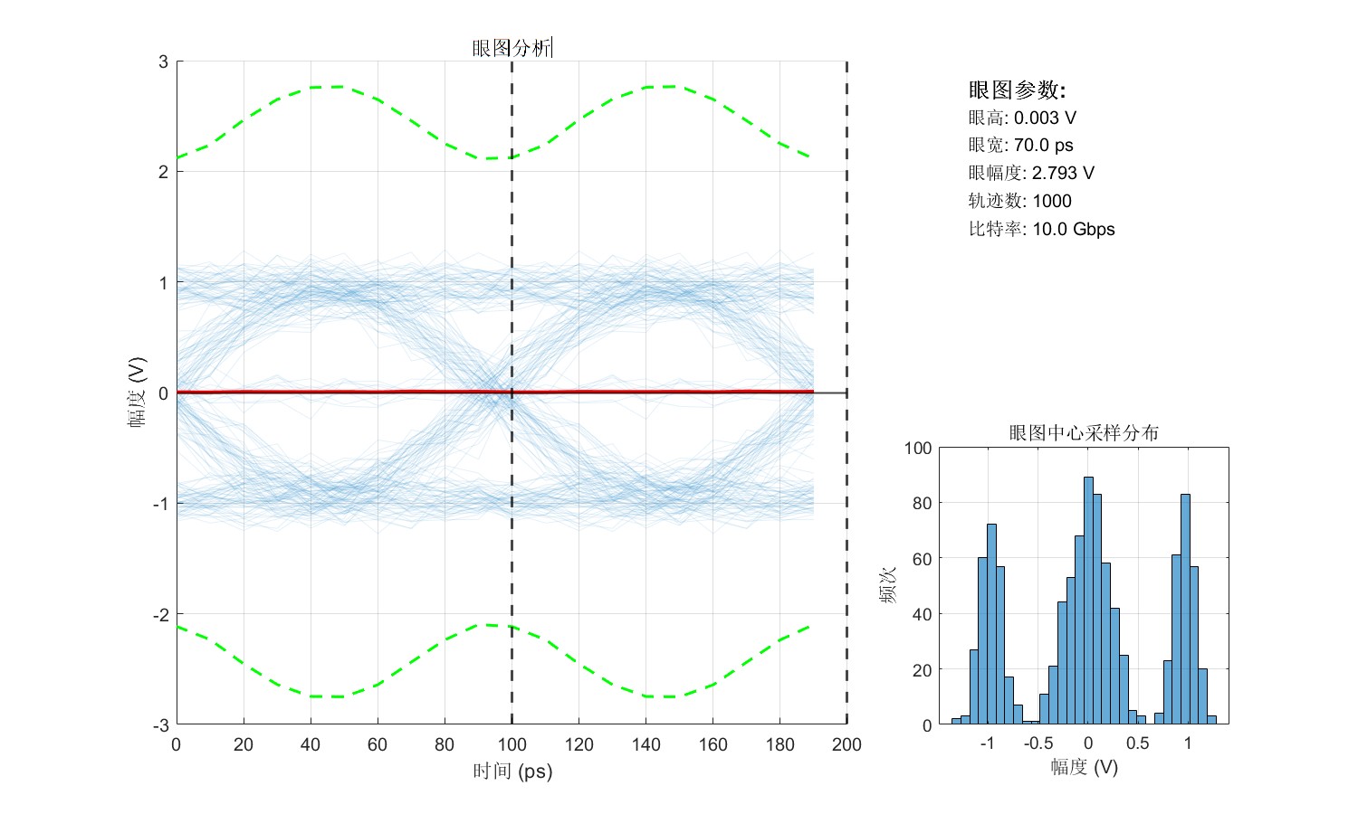 底部直方图:眼图中心采样点的分布统计