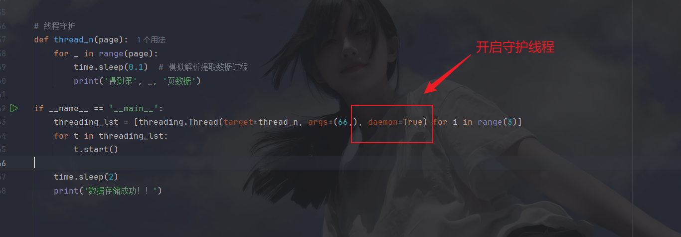 threading_lst = [threading.Thread(target=thread_n, args=(66,), daemon=True) for i in range(3)]