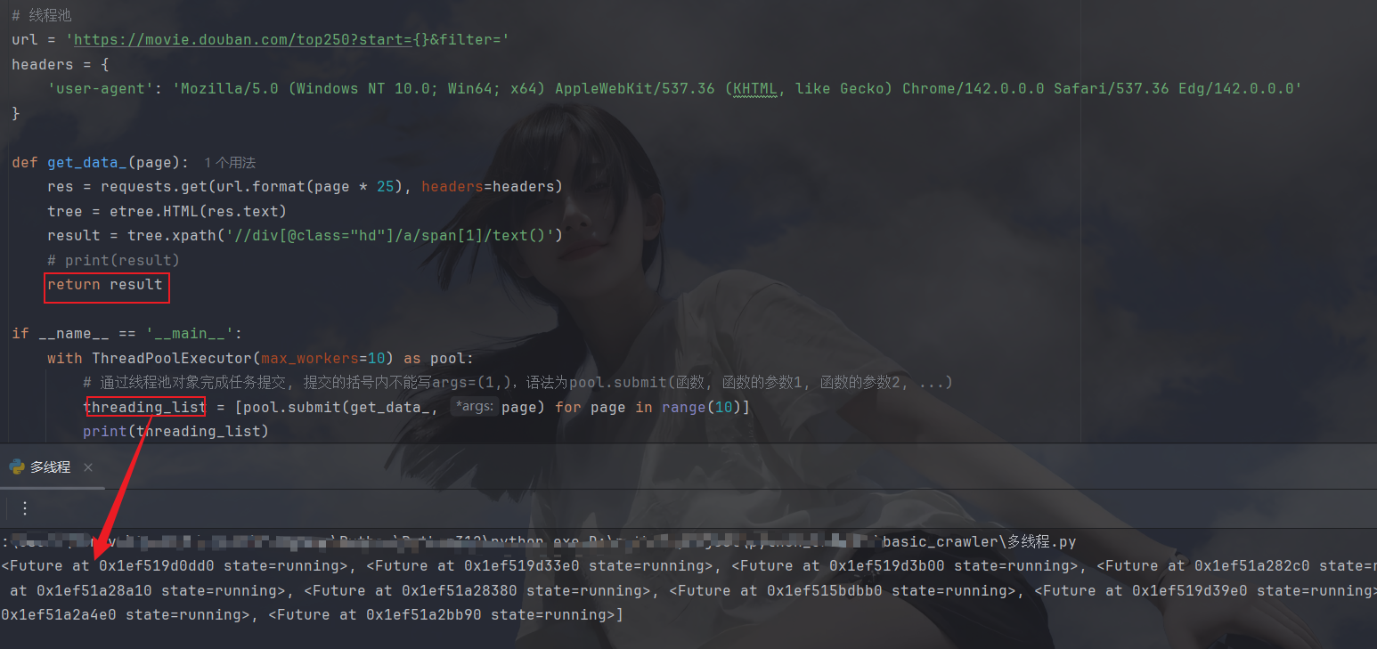 这里还需要将一个东西,当我们拿到数据想要交给另一个函数处理时,要return出来,但是返回到列表中得到的是future对象: