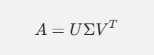 给定一个矩阵 AA(通常是一个用户-物品评分矩阵),SVD可以将其分解为三个矩阵的乘积: