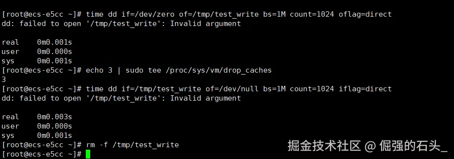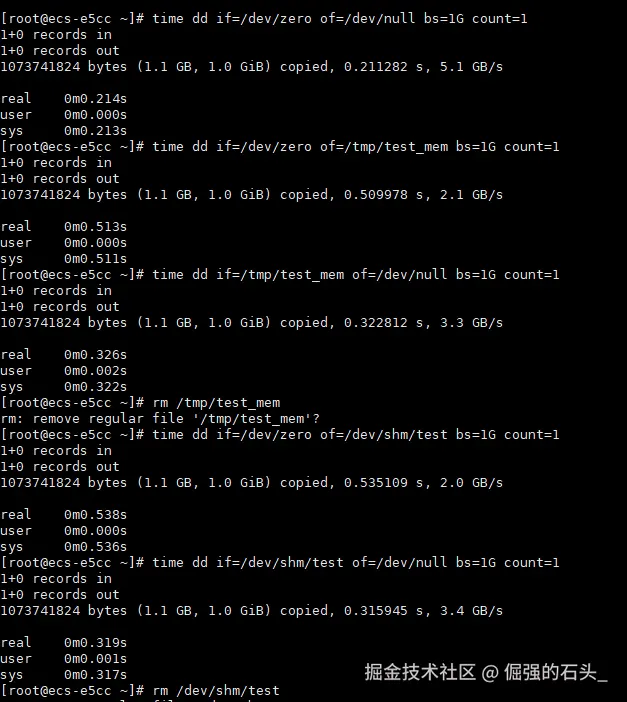 接下来我们使用dd命令进行磁盘读写性能测试。dd是Linux系统中最常用的磁盘测试工具,它可以模拟不同的读写场景,帮助我们了解磁盘的实际性能表现: