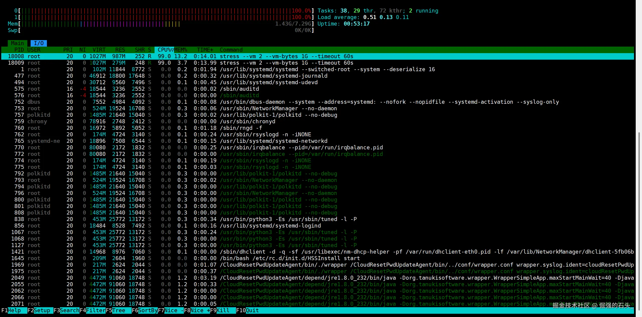 在进行性能测试的同时,我们需要实时监控CPU的使用情况。通过监控工具,我们可以观察到CPU使用率、负载情况、进程分布等重要信息,这些数据将帮助我们更好地理解系统的运行状态: