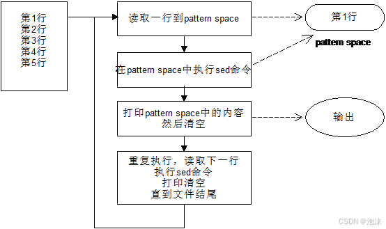 pattern space的内部空间中。sed 是行文字处理器。每次只会读取一行。