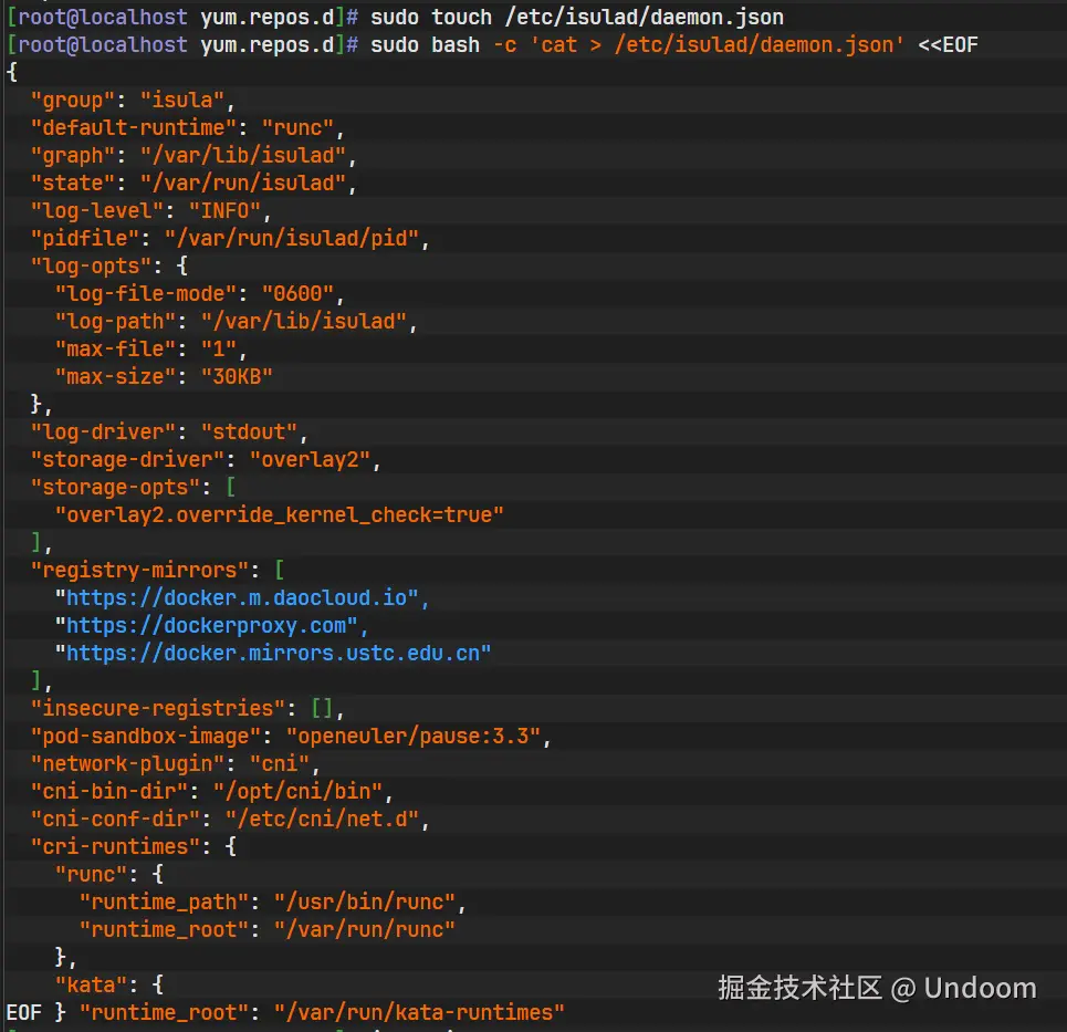 sudo bash -c 'cat > /etc/isulad/daemon.json' <<EOF