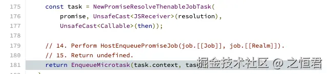 NewPromiseResolveThenableJobTask并把任务放到microtask_queue->EnqueueMicrotask(*task)的实现)。