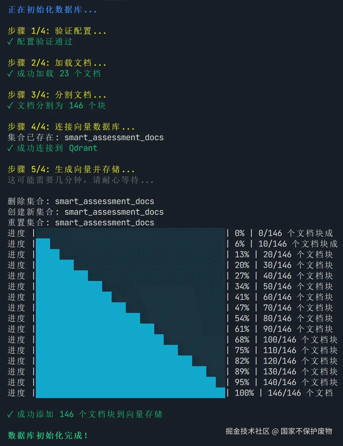 - 验证配置 → 2. 加载文档 → 3. 智能分块 → 4. 连接 Qdrant → 5. 批量向量化存储