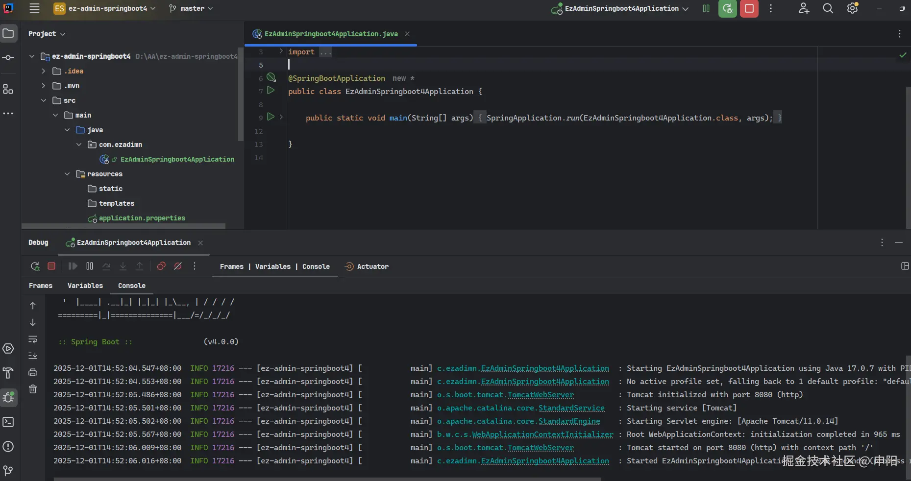 俺也一样,github.com/Caoshenyang... EZ-ADMIN,EZ 取自 "easy" 谐音,我想要整一个简单易用的后台管理系统,基础功能都已经实现了,我平时的一些 MVP , 就是用这个来快速实现的。这次我将在这个基础上升级为 springboot 4 的版本,并且进一步完善他。