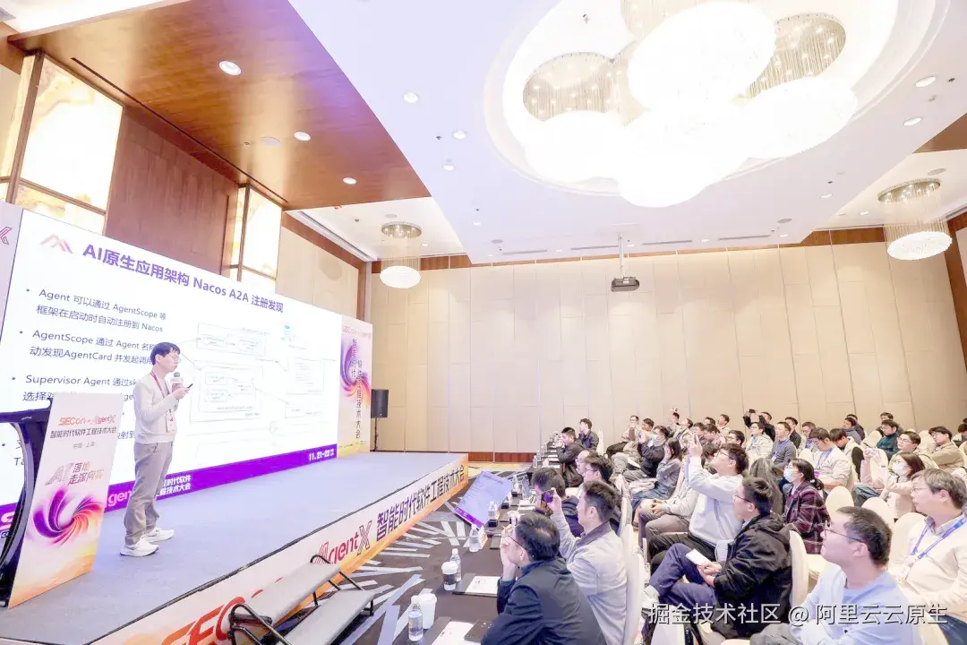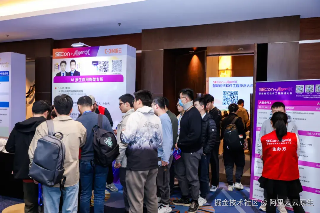 近日,2025 SECon × AgentX大会------AI 原生应用架构专场圆满落幕,本次专场阿里云联合信通院共同出品,现场吸引了 80+ 名技术从业者深度参与。