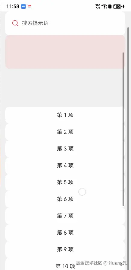 从图上来看,当手指在内部的Scroll滑动时只能滑动内部的Scroll,在外部Scroll滑动时,只能滑动外部的Scroll,这和我们的需求不符合。 - 第三部分的物品卡片没有展示出来。