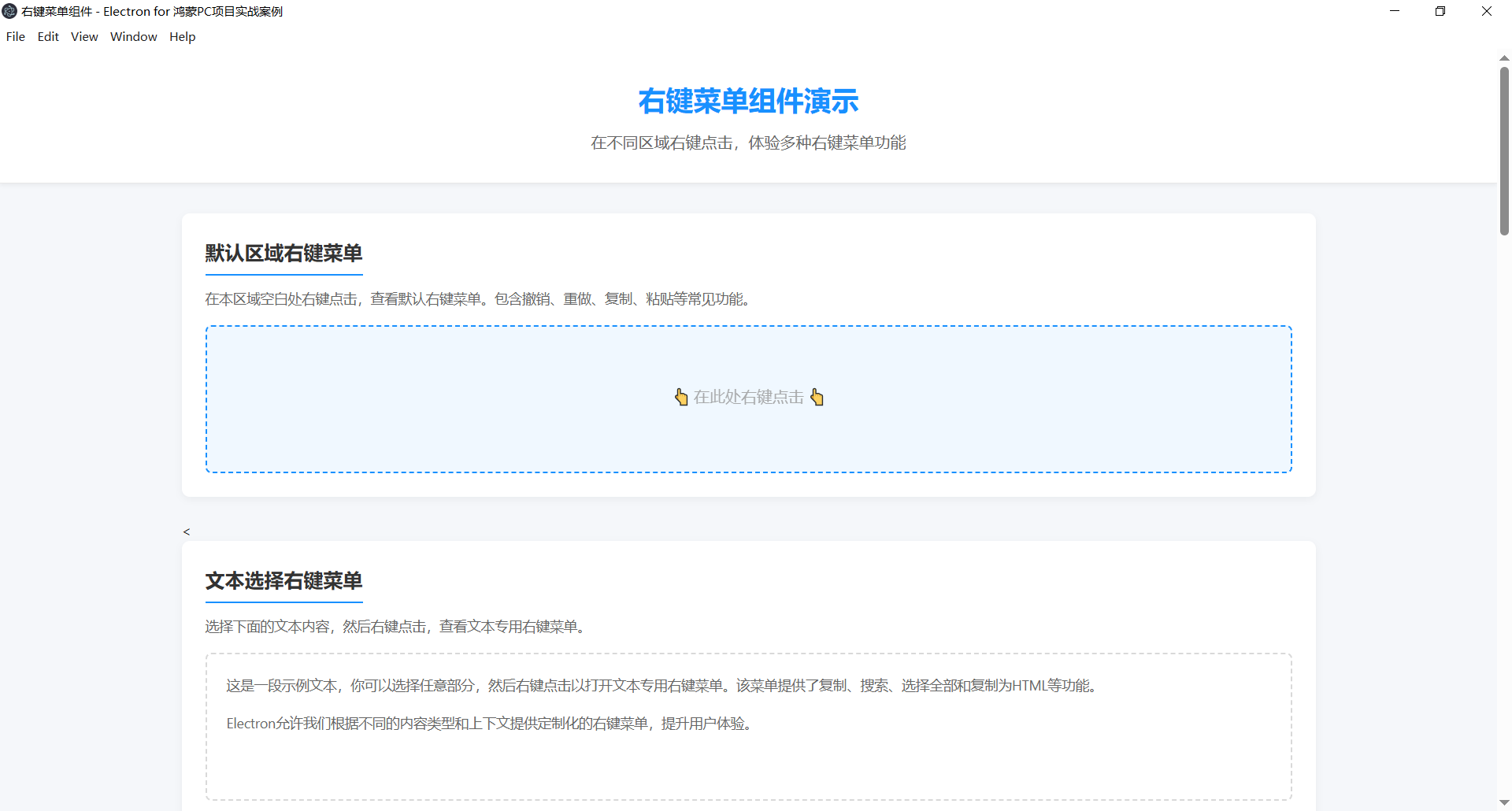 ├── renderer.js # 渲染进程JavaScript,实现自定义右键菜单逻辑