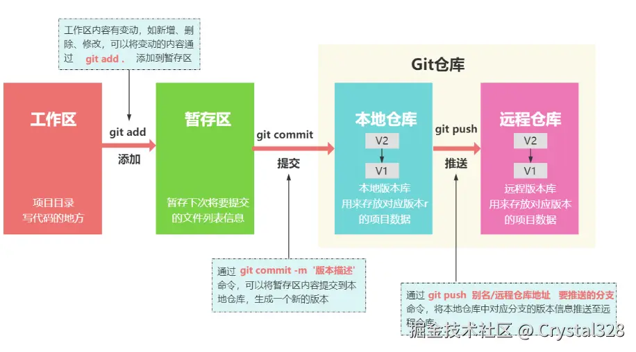 git commit命令,用来将暂存区的内容提交到本地仓库,git commit后暂存区和本地版本库的内容是一致的