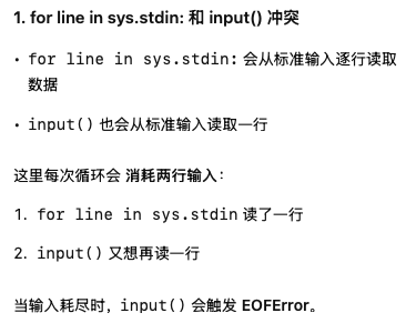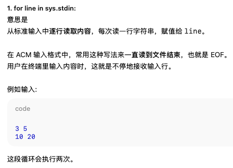 通过for line in sys.stdin:读取到的行都是字符串格式,实际使用时要转换为对应的数据格式