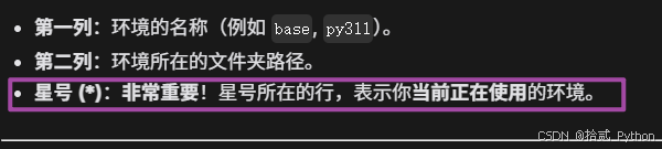 你还在 base 环境,懒得切换进去,只想看一眼别的环境(比如 py311)里装了啥,可以用 -n 参数指定名字: