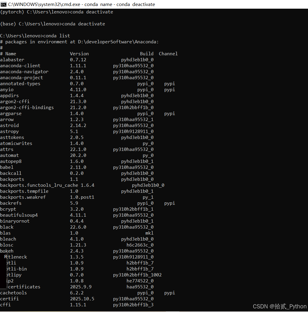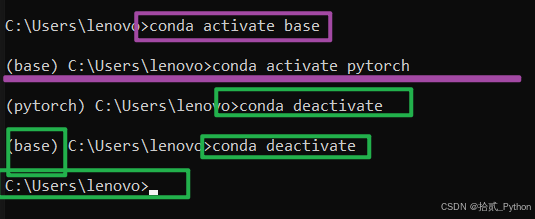 conda deactivate # 退回上一个所在的环境 默认的 base 环境