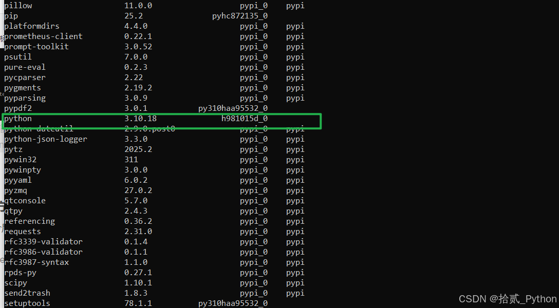 如果有 pypi 字样:说明这个包是你用 pip install 命令装的。