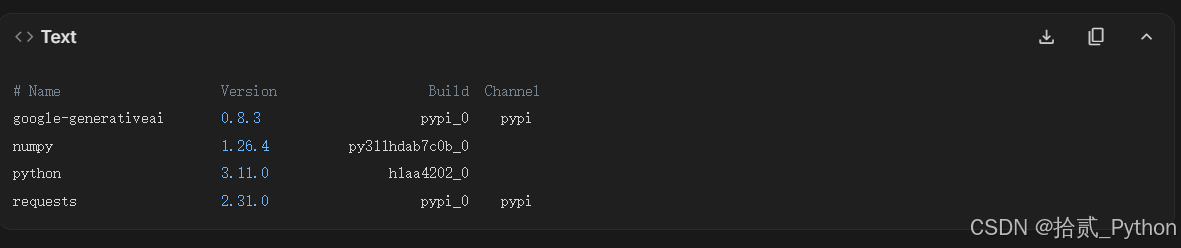 - [Name Version Build Channel google-generativeai 0.8.3 pypi_0 pypi](#Name Version Build Channel google-generativeai 0.8.3 pypi_0 pypi)