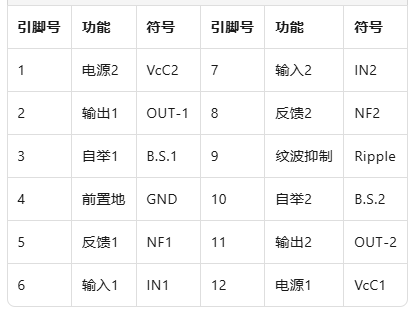 - 电压增益范围广泛,典型值为 45dB(Rf = 120Ω,f = 1kHz)和 56.5dB(Rf = 0Ω,f = 1kHz),能够满足不同音频信号放大的需求。
