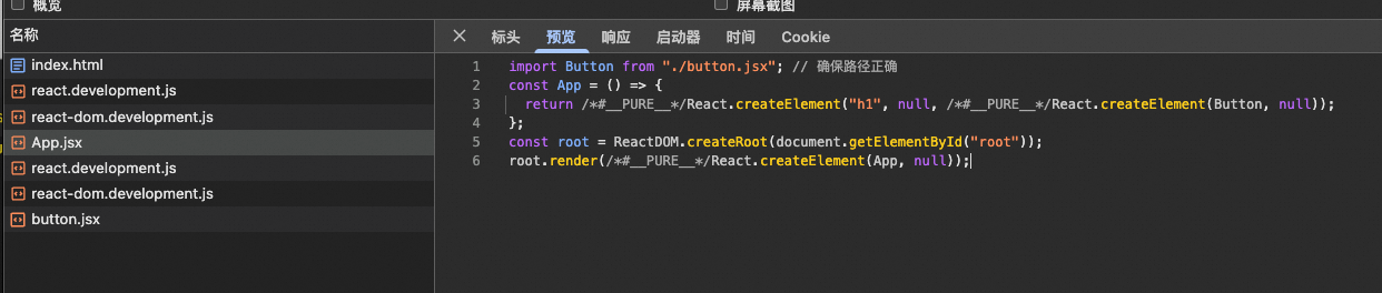 先暂时使用 babel 进行 jsx 语法的处理和转化 本地实现服务器进行 请求拦截 遇到 jsx 文件 就进行代码的转化 从而将转化之后的结果 返回给浏览器,浏览器进行渲染